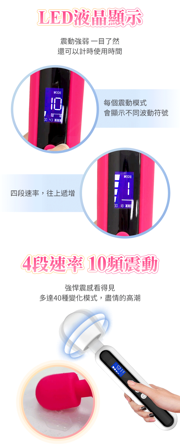 LED液晶顯示震動強弱一目了然還可以計時使用時間每個震動模式會顯示不同波動符號四段速率,往上遞增