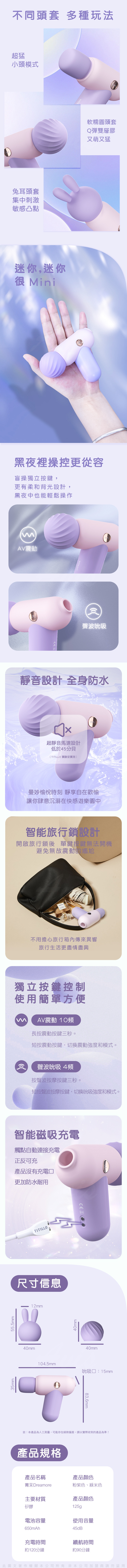 個頭只有巴掌大小,攜帶會很方便。兩個替換頭,一個是圓頭,一個是兔子頭。
