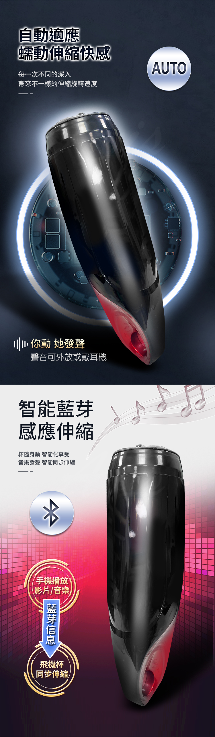 飛機杯同步伸縮,杯隨聲動智能化享受
