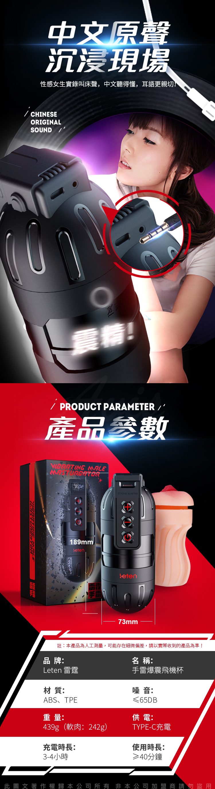 Leten|手雷爆震抖臀|智能APP操控發音飛機杯