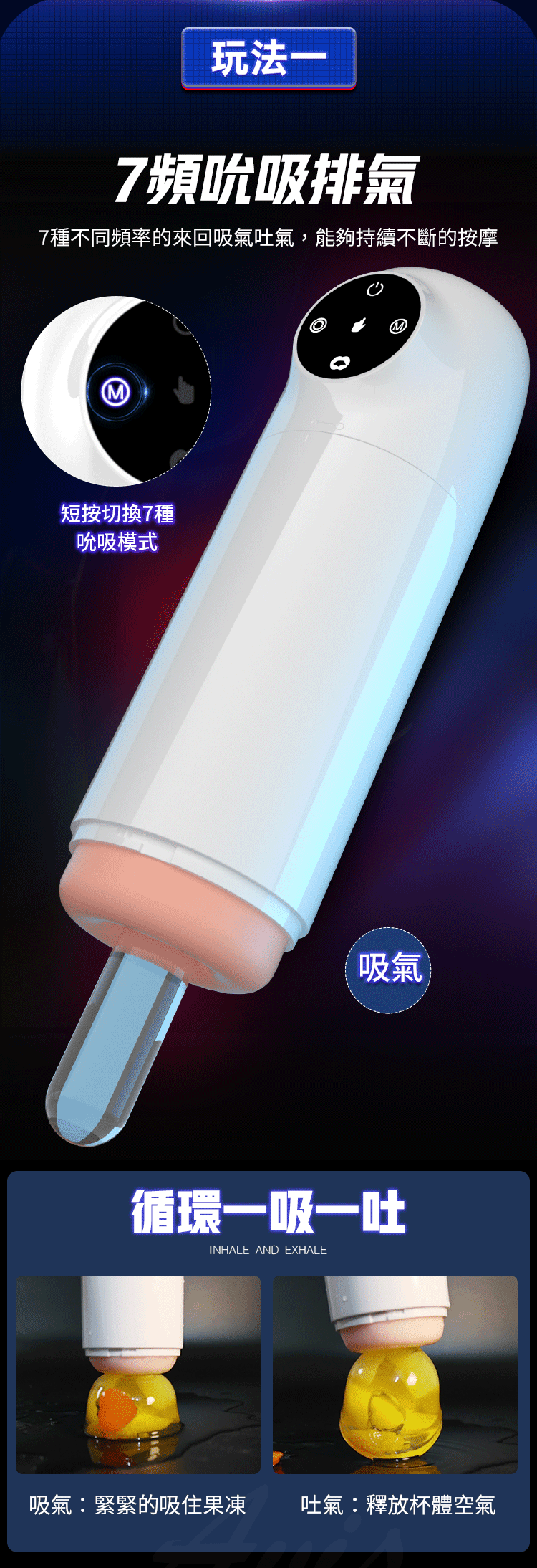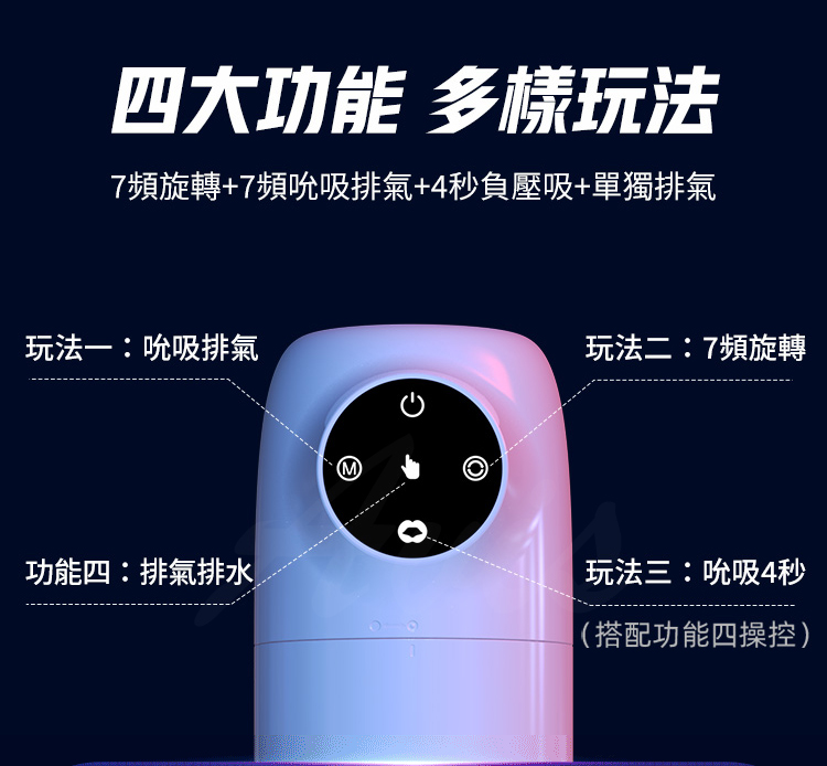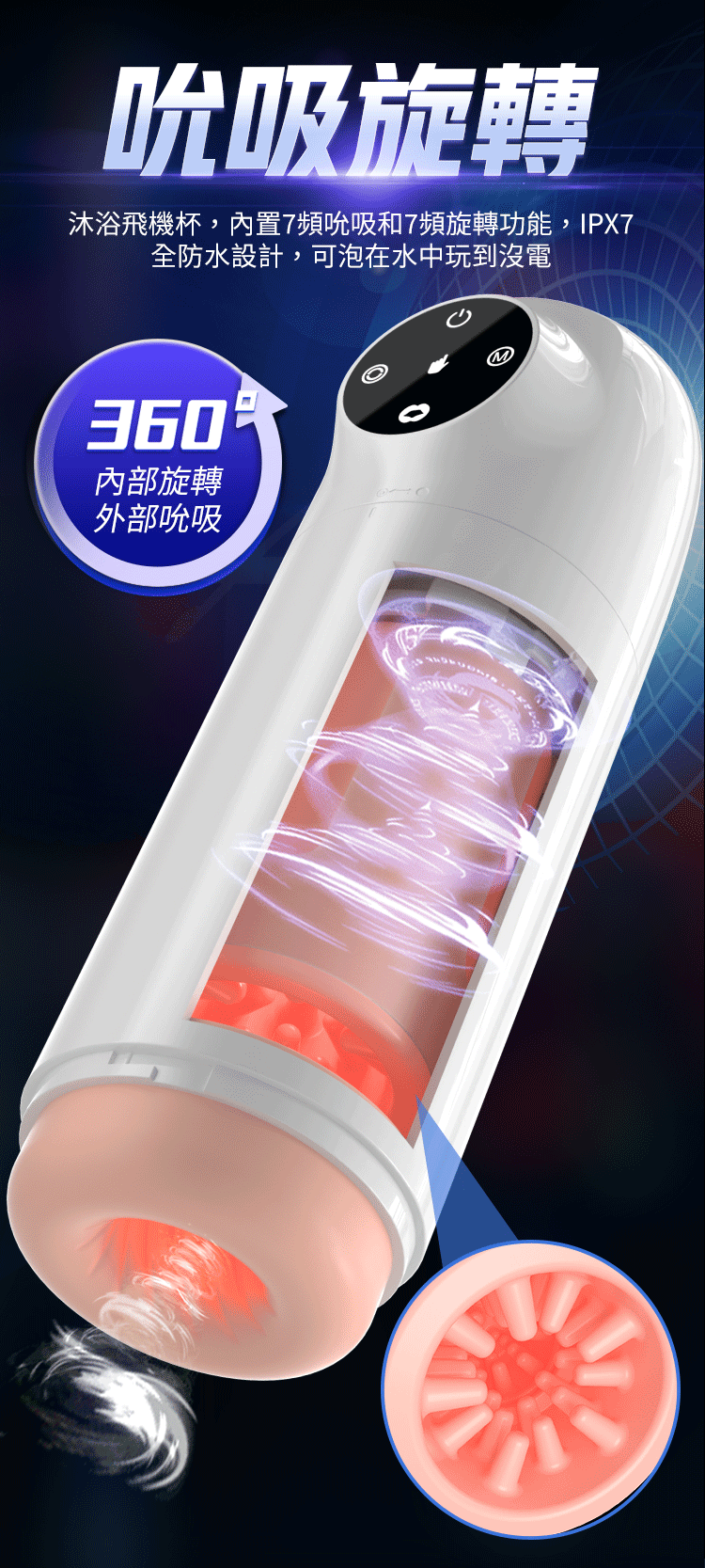 產品功能:旋轉、吮吸、排氣、秒負壓吸