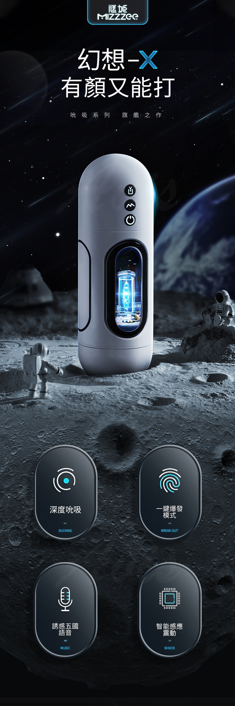 產品名稱:幻想X|吮吸飛機杯|電動發音 5國發音
