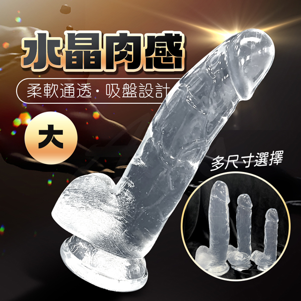 名稱:仿真含蛋|水晶陽具老二按摩棒顏色:透明色尺寸:大/中/小材質:TPE