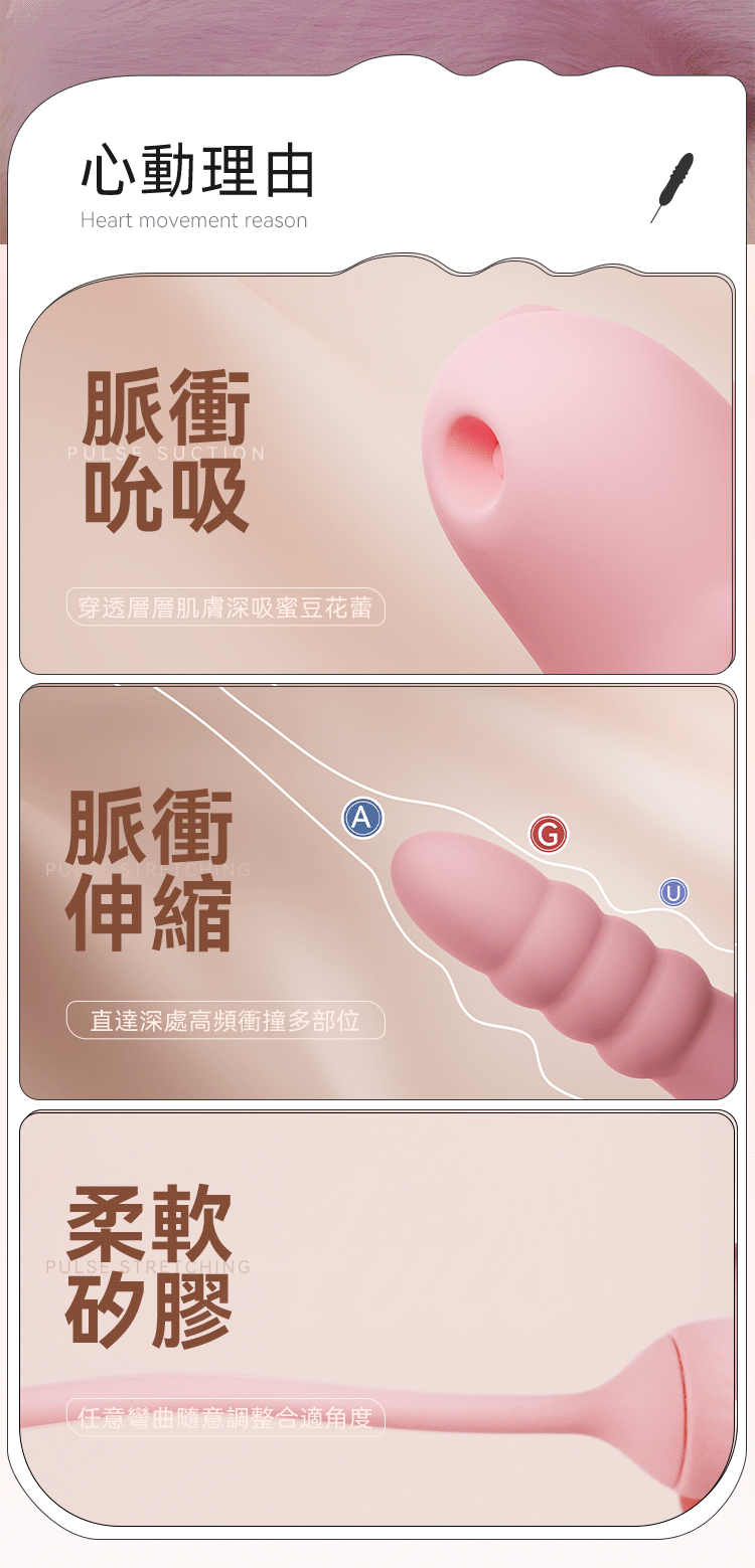 產品名稱:GALAKU|小惡魔|10頻震動吮吸加溫按摩棒 粉