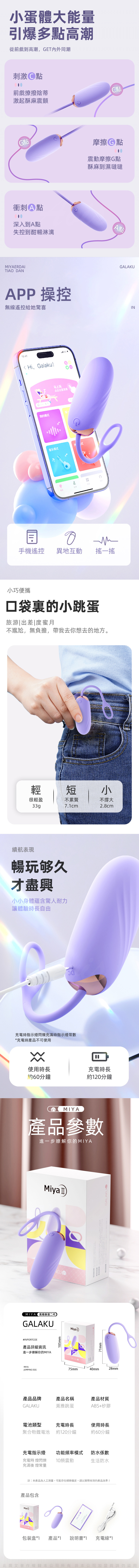 產品名稱:GALAKU|覓雅2代|APP無線遙控智能跳蛋-紫色