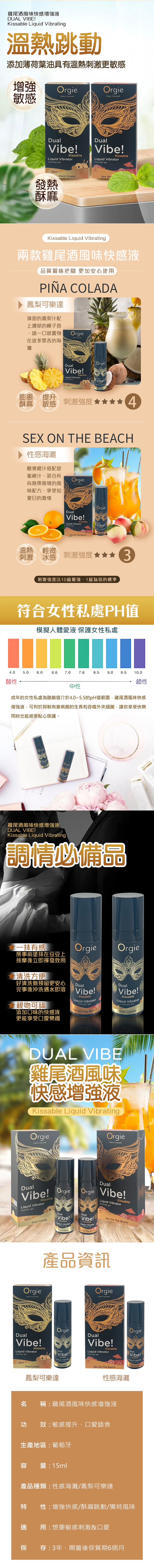 產品名稱:Orgie|Dual Vibe! Pinã Colada|跳動式潤滑液 椰林飄香味 15ml