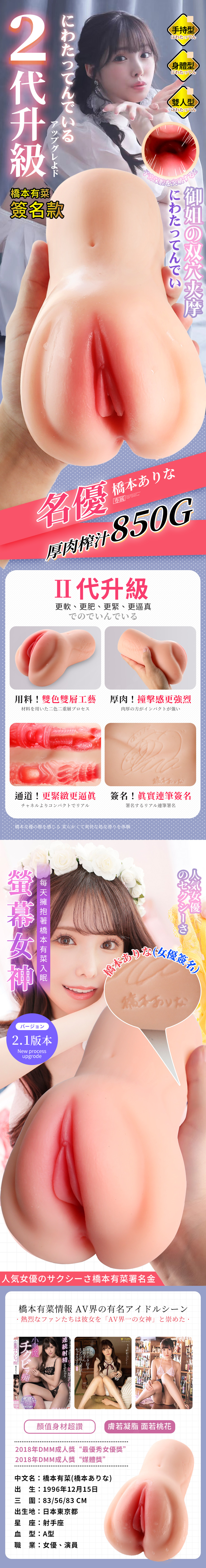 名稱:仙境|橋本有菜 新有菜|飛機杯名器 雙色雙穴款