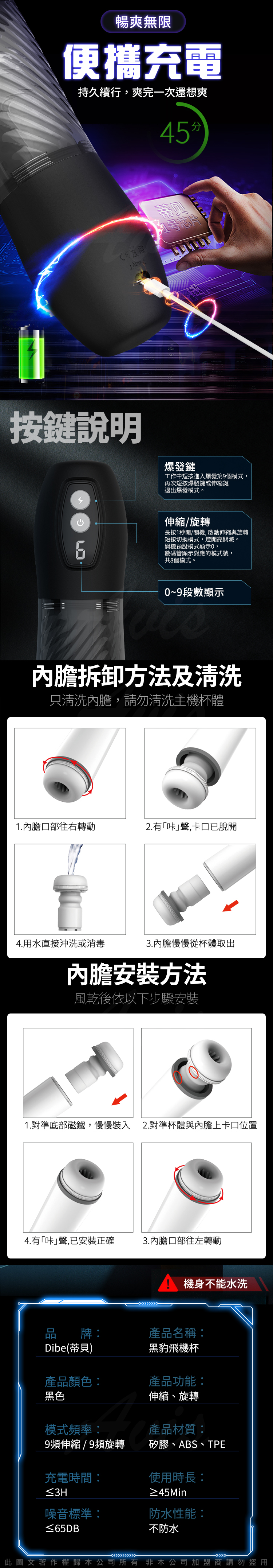產品名稱:Dibe黑豹|旋轉伸縮|電動飛機杯
