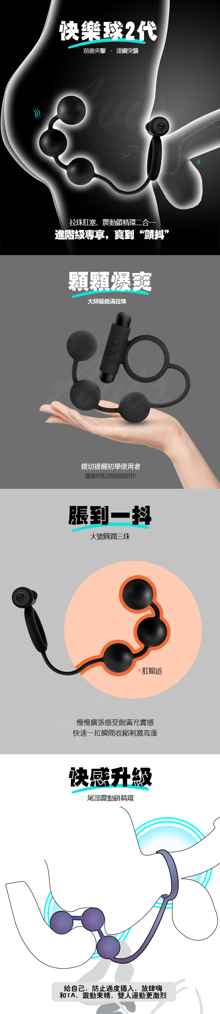 我們的快樂球2代結合了拉珠肛塞與震動鎖精兩大功能,為您帶來極致的進階快感。設計精巧,適合不同需求的使用者,保證讓您爽到顫抖!