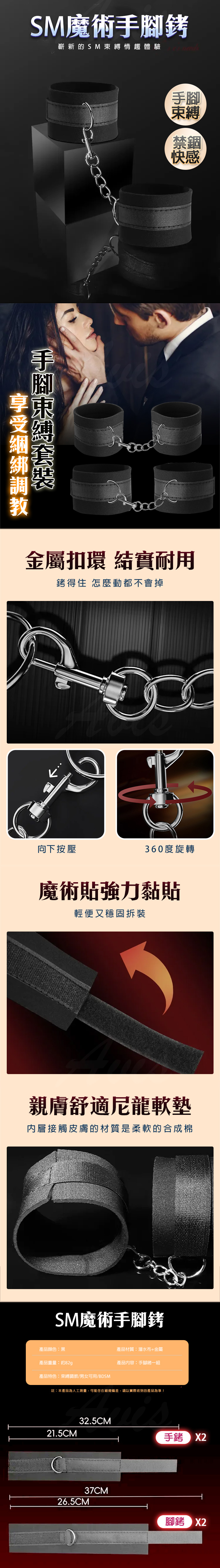 產品名稱:魔術貼設計|SM手腳束縛套裝