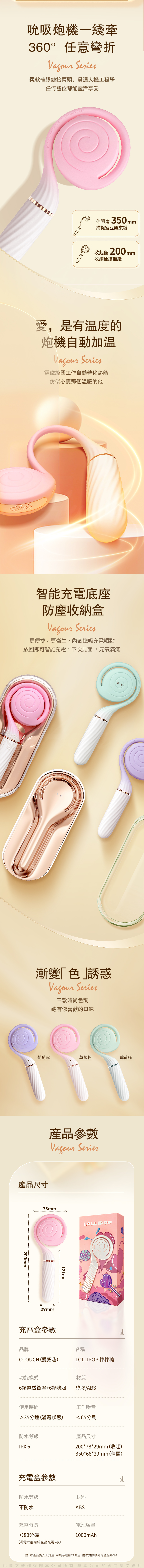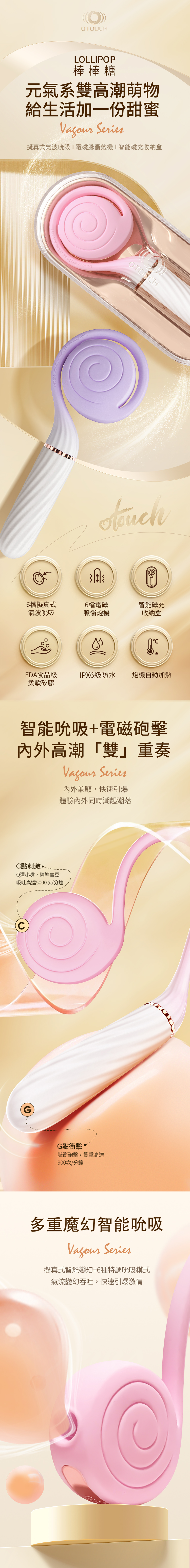 名稱:OTOUCH|棒棒糖|吸吮電磁衝擊雙頭按摩棒 粉