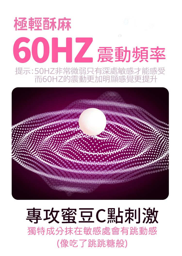 - 跳動感蜜豆高潮液:使用後感受輕微爆跳感與酥麻刺激,讓感官徹底覺醒!