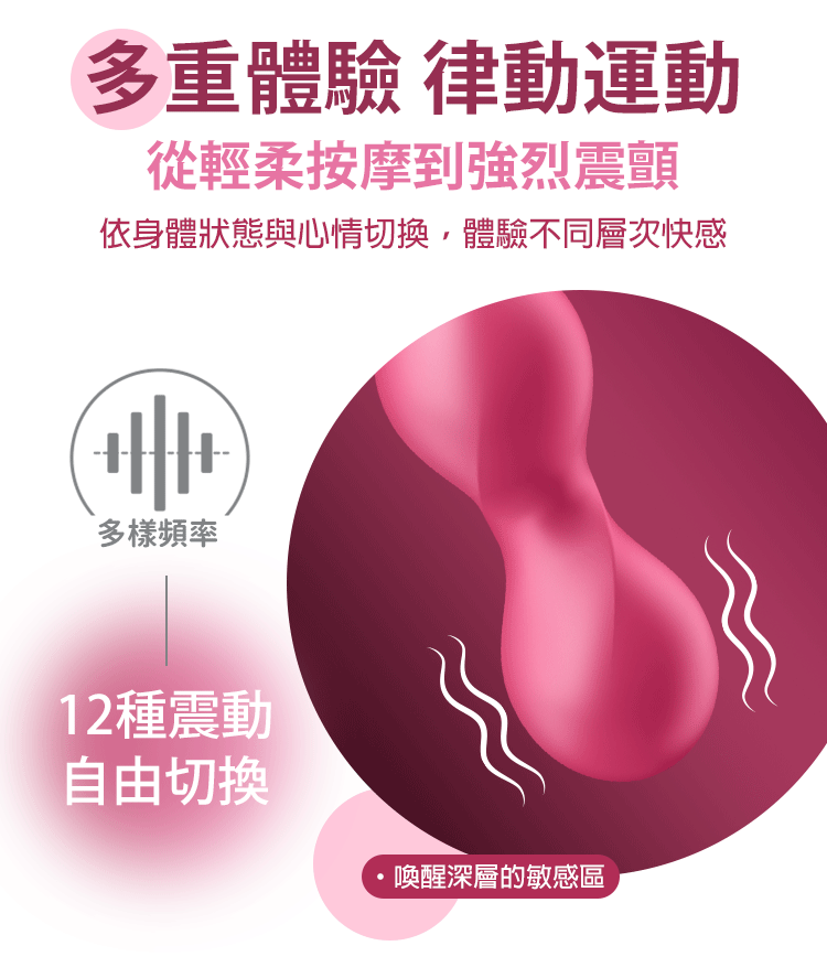 物理訓練 + 震動刺激:鍛鍊盆底肌的同時,快感層層遞進。