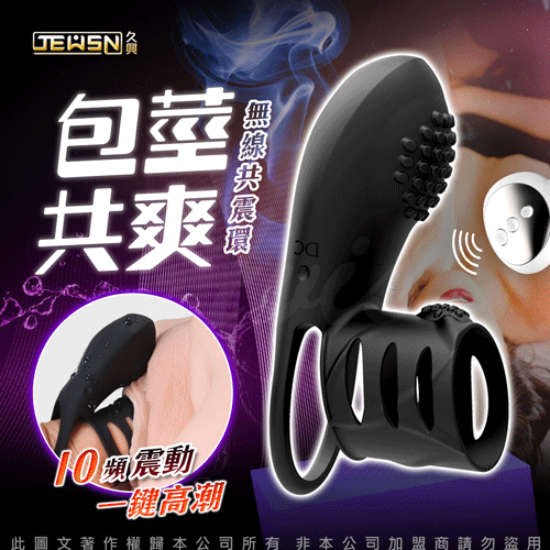 久興-雙震10段變頻柔軟矽膠鎖精環-黑色 遙控...